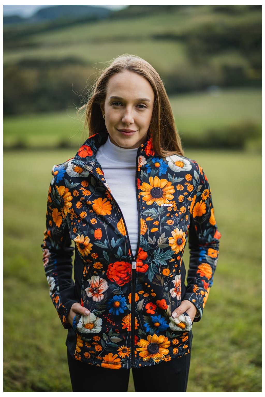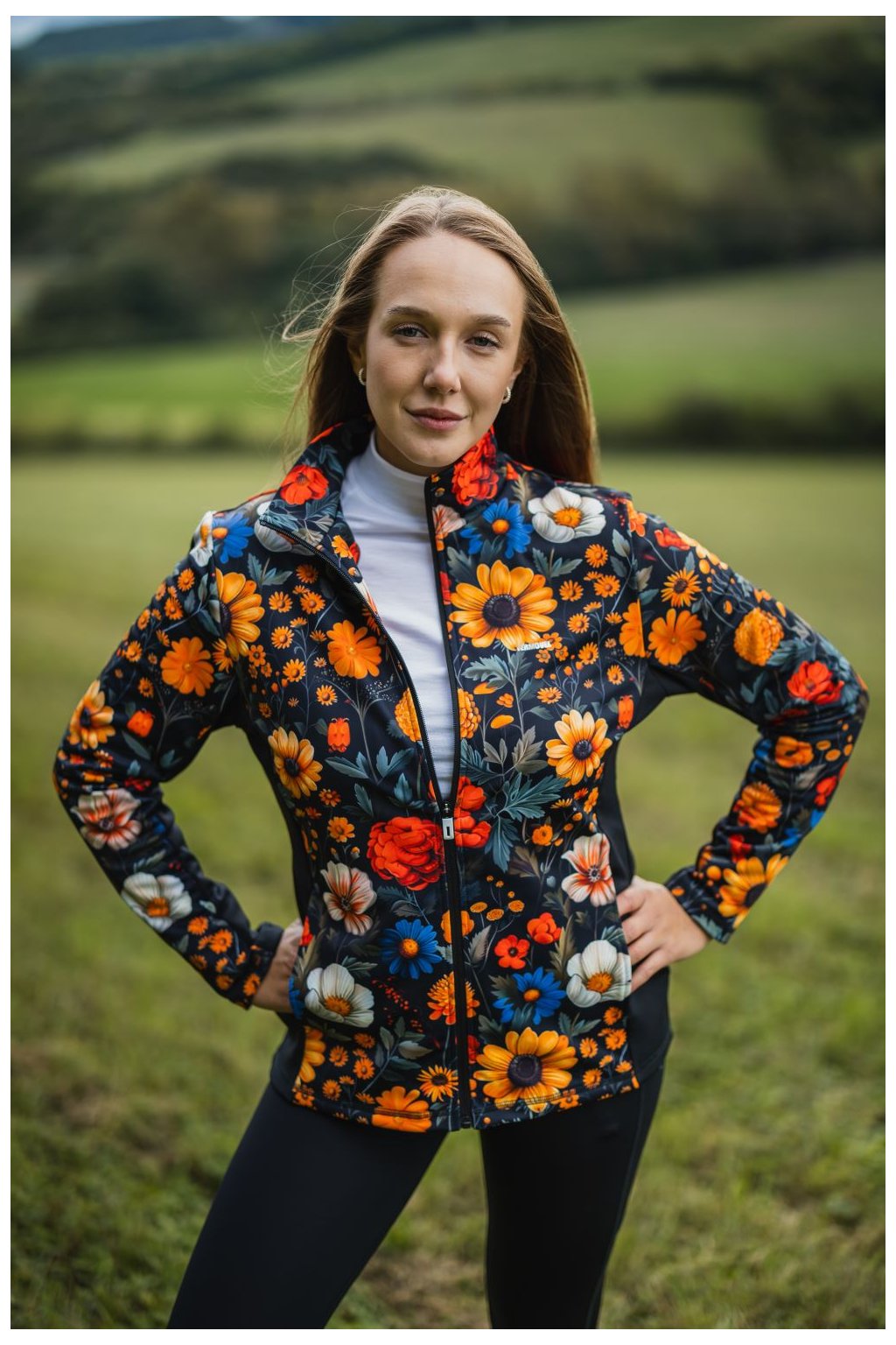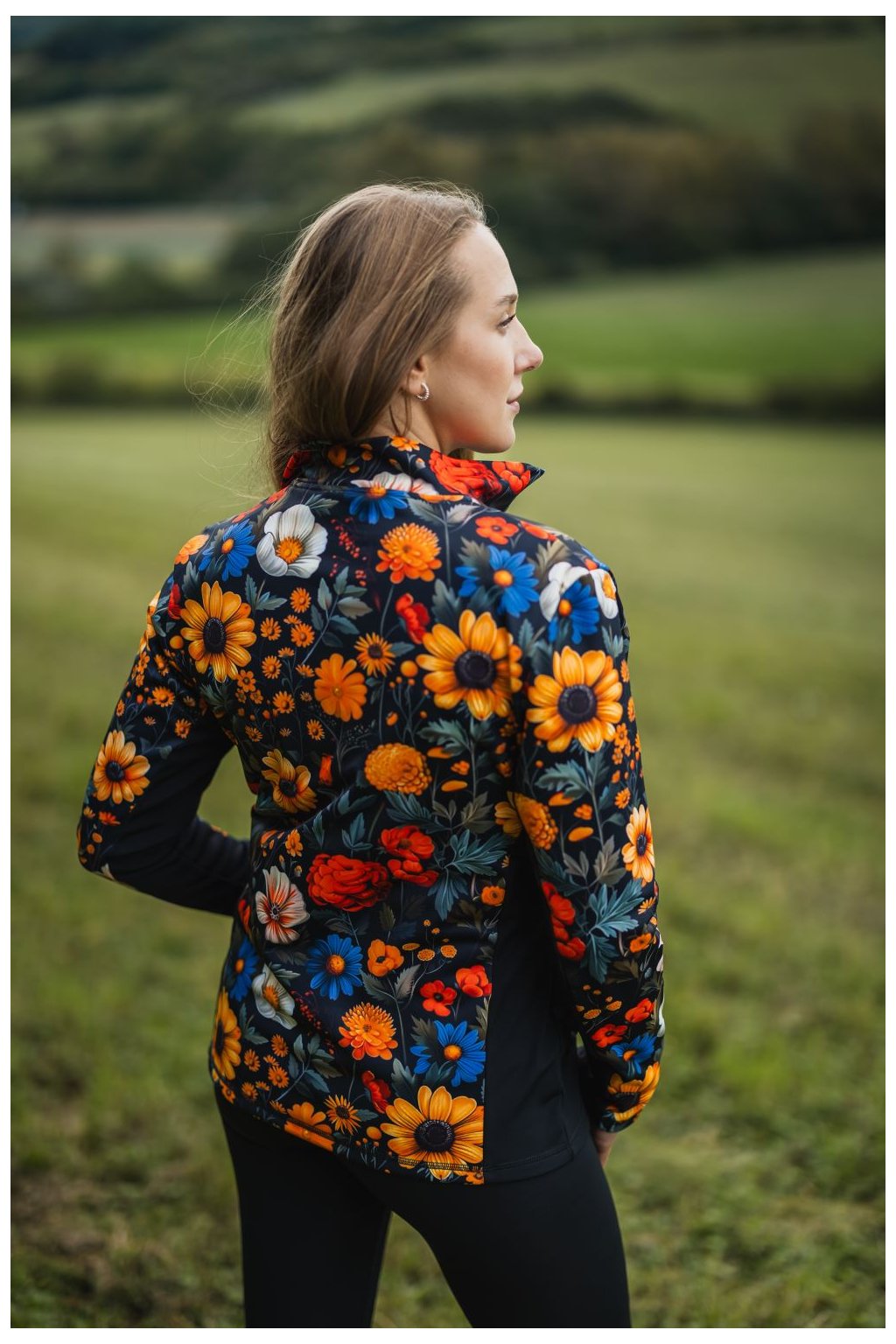 Dámska funkčná bunda FLOWER BOOM je celozipsová so stojatým praktickým stojačik, ktorý chráni pred vetrom a zároveň dodáva bunde elegantný vzhľad. Nechýbajú praktické bočné vrecká. Príjemný materiál s jemným počesom z vnútornej strany je ideálny na premenlivé počasie. Na prednej a zadnej strane je celoplošná kvetinová potlač. Bunda má premyslený strih, ktorý lichotí postave. Po bokoch sú umiestnené jednofarebné čierne panely, ktoré opticky zoštíhľujú siluetu postavy. Táto bunda je ideálnou voľbou pre ženy, ktoré chcú spojiť pohodlie a štýl. Jej unikátna kombinácia kvetinovej potlače a čiernych bočných panelov ju robí výnimočnou a trendy.